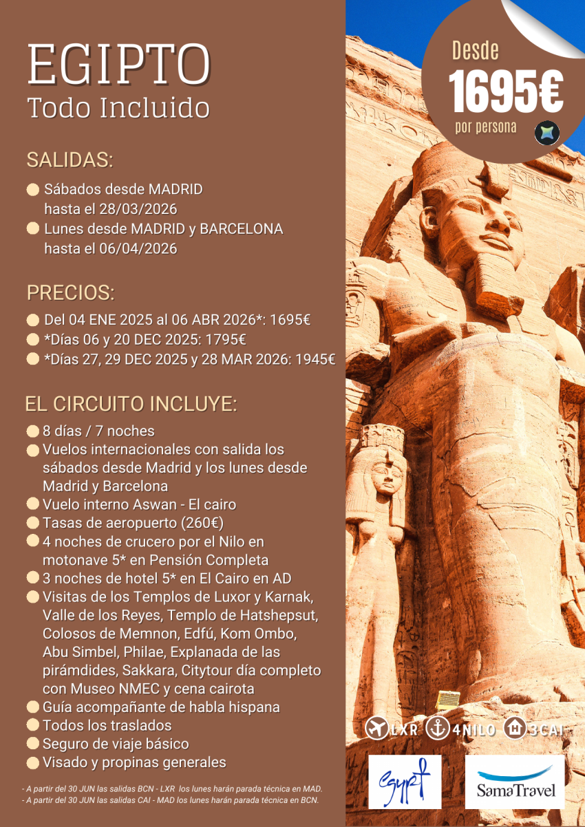 EGIPTO Todo Incluido" 8 días crucero +Cairo +visitas [Desde Madrid y Barcelona] (Ene25-Abr26) *Desde 1695€*