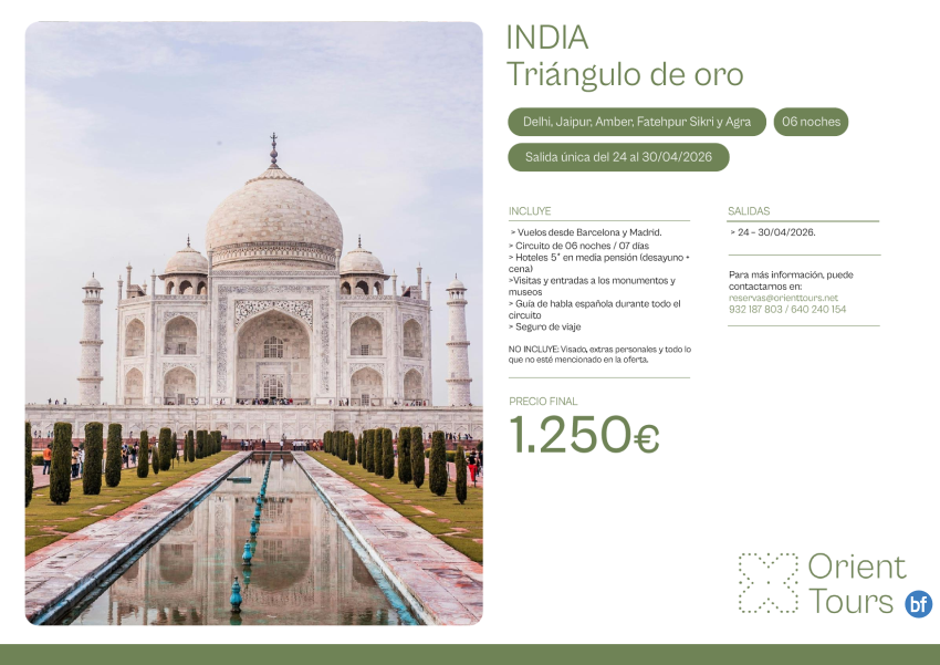 India. Circuito Triangulo de Oro 06 nchs con vuelos incluidos. Precio final 1250 €