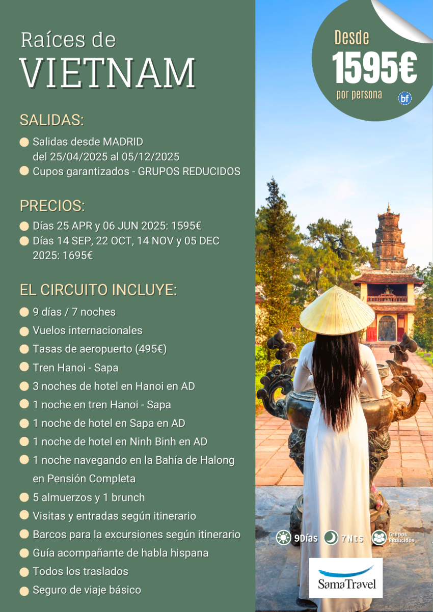 "Raíces de VIETNAM y Sapa": circuito 9 días - cupos garantizados [Desde MAD] 14mar - 05dec25 **desde 1.695€**