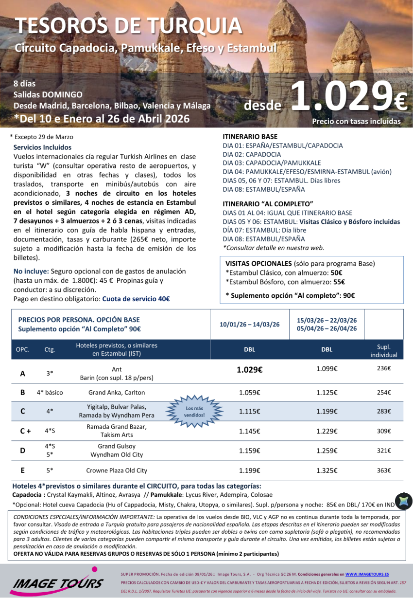 Tesoros de TURQUIA desde Capadocia, con Pamukkale, Efeso y Estambul, todo avión, 8ds desde 1029€ hasta Abril