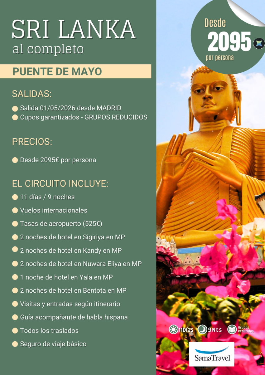"Sri Lanka Puente de Mayo": Circuito 11 días + visitas - Cupos garantizados desde Madrid (01MAY) *Desde 2095€*